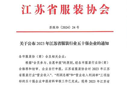 “2023年江蘇省服裝行業(yè)五十強(qiáng)企業(yè)”正式發(fā)布