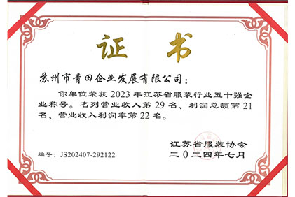 江蘇省服裝協(xié)會(huì)50強(qiáng)2023年度